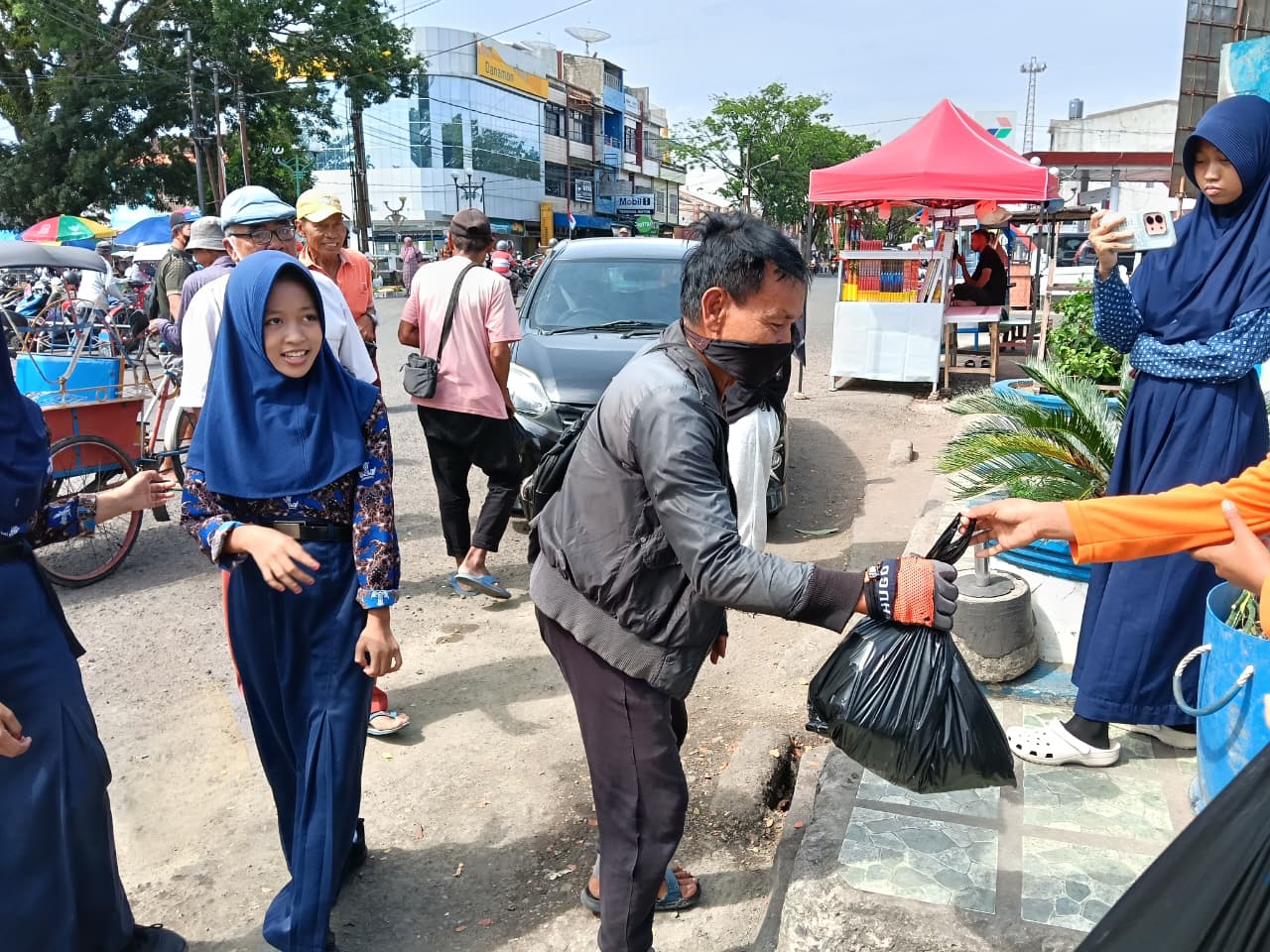 Suasana kebersamaan terasa hangat saat para pelajar menyerahkan langsung paket sembako kepada para penerima manfaat. Wajah-wajah penuh haru dan senyum bahagia terlihat dari para tukang becak dan tukang ojek yang menerima bantuan tersebut.