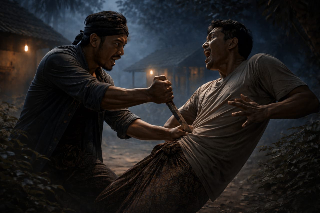 Keheningan kampung pecah oleh peristiwa yang tak pernah diharapkan siapa pun—seorang warga ditemukan tergeletak bersimbah darah di area semak-semak.
